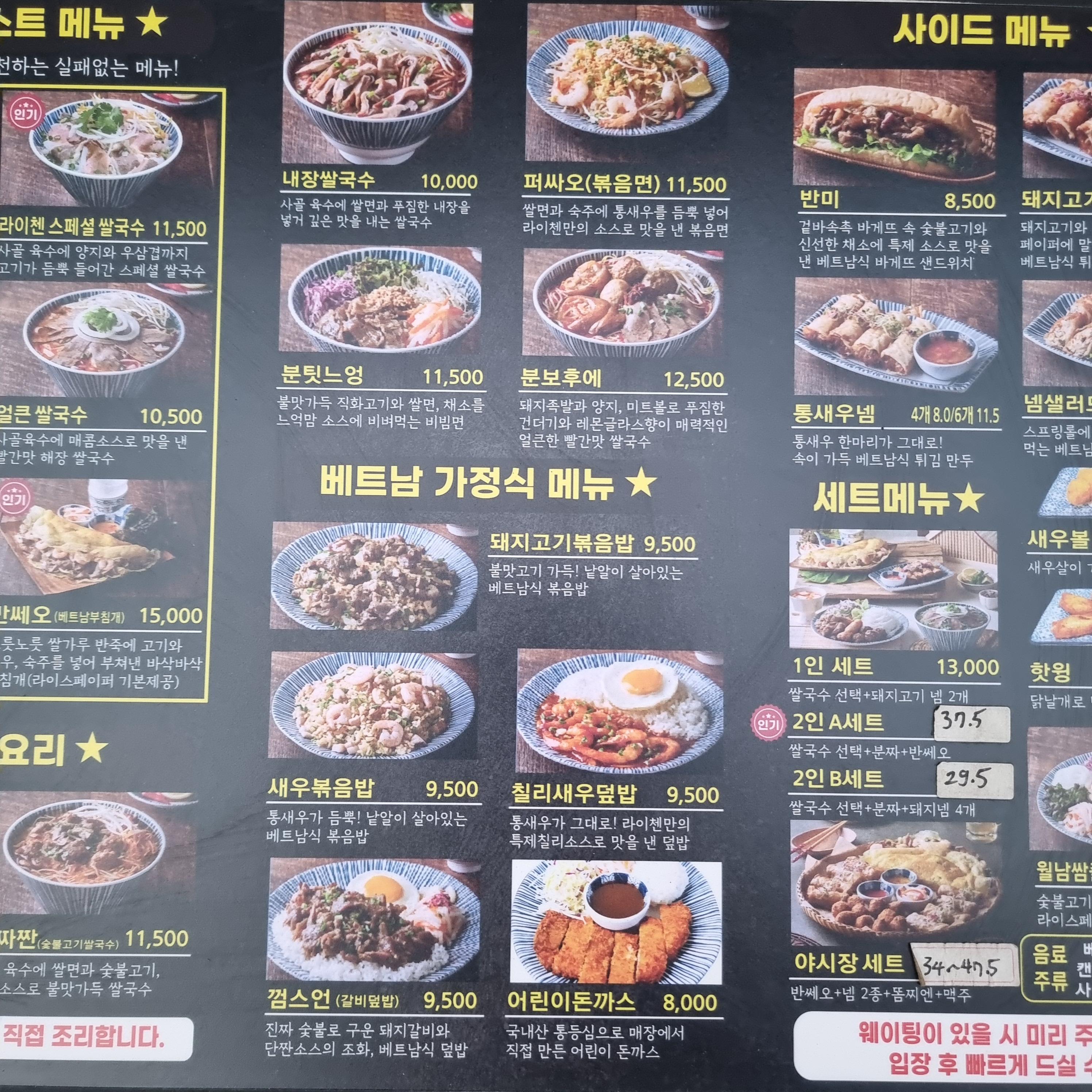 단품메뉴부터 세트메뉴까지 쌀국수부터 각종 볶음밥과 베트남 특색이 있는 반미, 반쎄오 같은 메뉴까지 메뉴가 정말 다양했습니다.