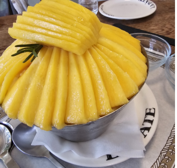 이곳의 망고빙수는 마치 고급 호텔에서나 맛볼 수 있는 디저트처럼 신선한 망고가 듬뿍 올라가 있고, 얼음이 곱게 갈려 부드럽게 녹아내리기 때문에 망고와 환상적이 조화를 이룹니다.