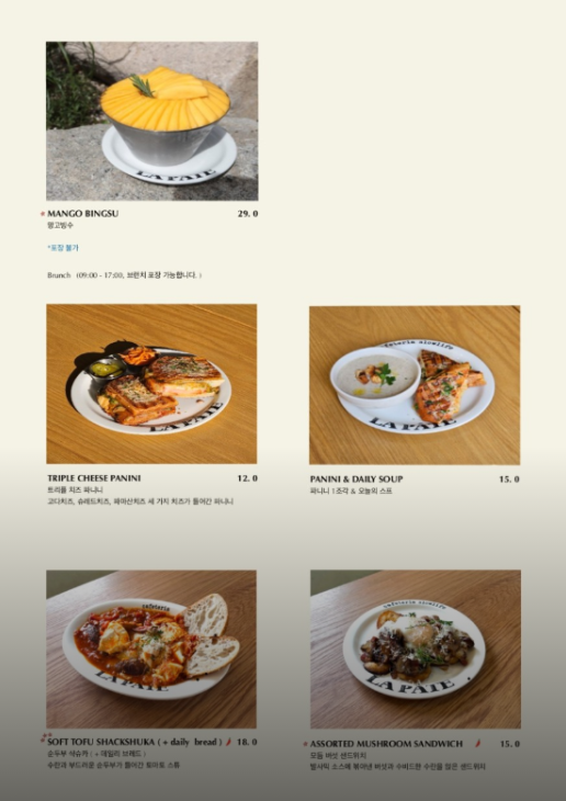 전체적인 메뉴 구성은 라파테 홈페이지에서 제공하고 있는 아래의 메뉴판을 참고하시면 됩니다.