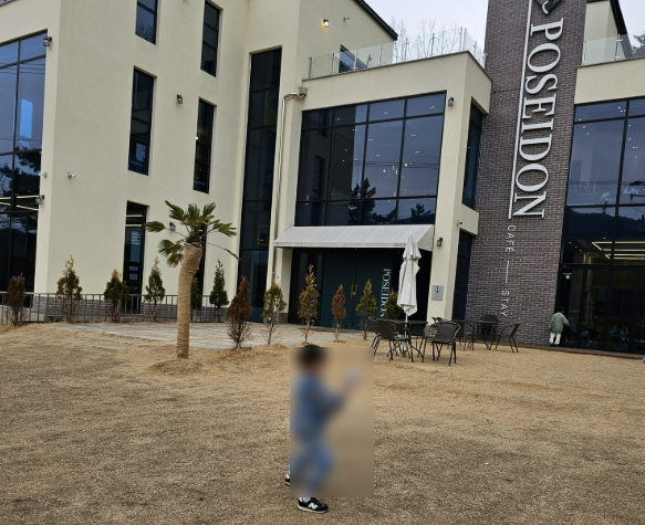 카페 '포세이돈'에 도착하면 가장 먼저 눈에 띄는 것은 입구 앞의 넓은 주차장이었는데, 입구 앞에 넉넉한 주차장이 마련되어 있기에 방문객들이 주차 걱정 없이 카페를 이용할 수 있습니다.