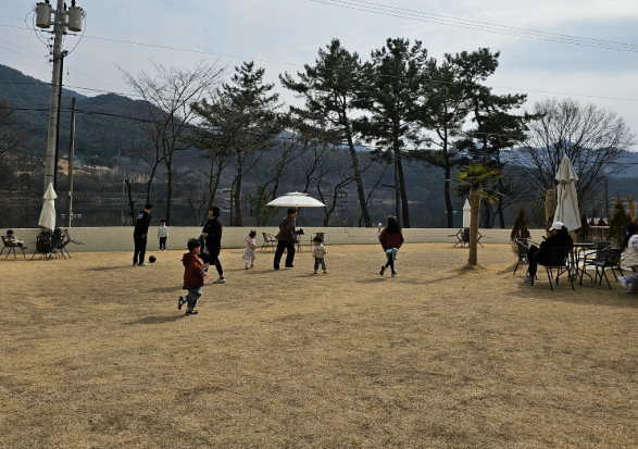 넓은 주차 공간과 쾌적한 실내 공간, 잔디밭에서 신나게 뛰어노는 아이들의 모습을 보며, 이 카페가 제공해 주는 다양한 서비스들이 매우 만족스러웠습니다.