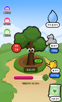 나무를 레벨 5까지 키워야만 3,000포인트를 적립받을 수 있는데, 레벨 4까지는 빠르게 나무를 키울 수 있으나 레벨 5에서는 생각보다 시간이 오래 걸립니다.
