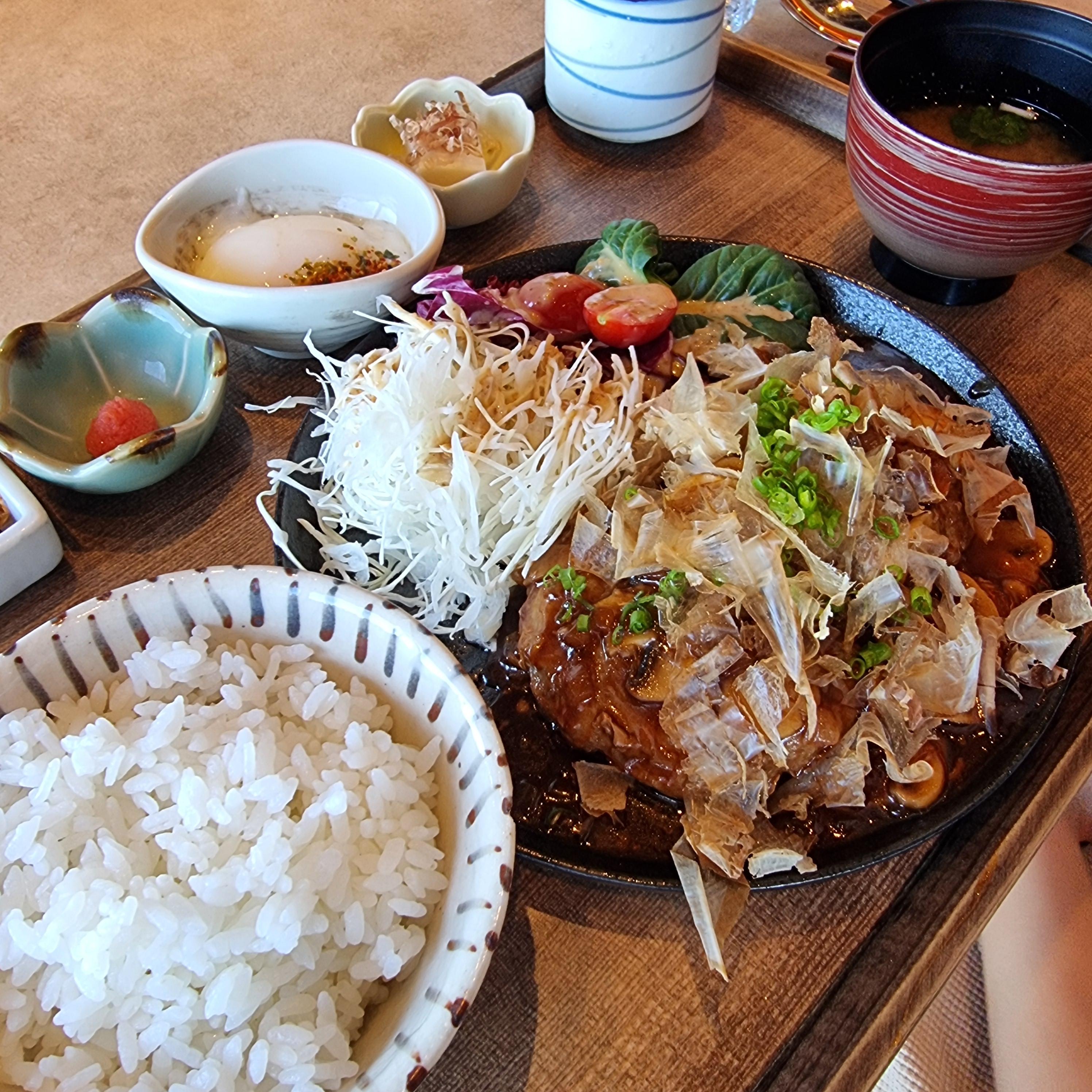 함박스테이크 위에 뿌려져 있는 소스는 고기와 밸런스가 아주 잘 맞아 맛도 전체적으로 조화로운 느낌이었고, 함께 나온 신선한 야채와 깔끔한 밑반찬은 느끼함을 없애는데 매우 좋았습니다.